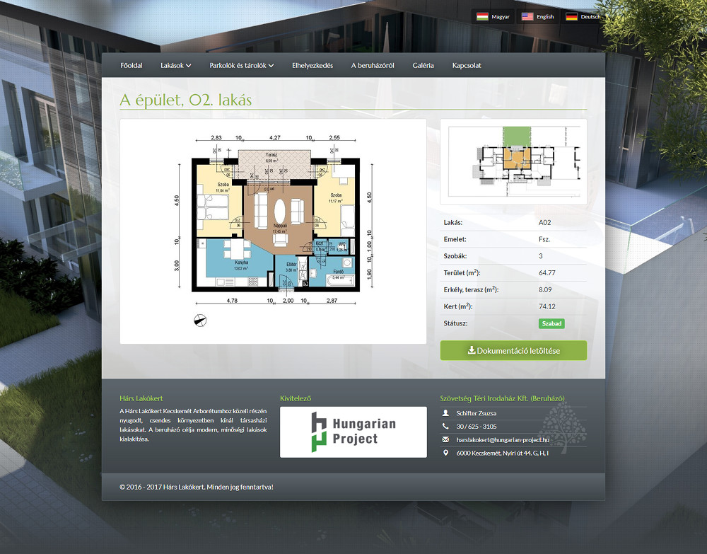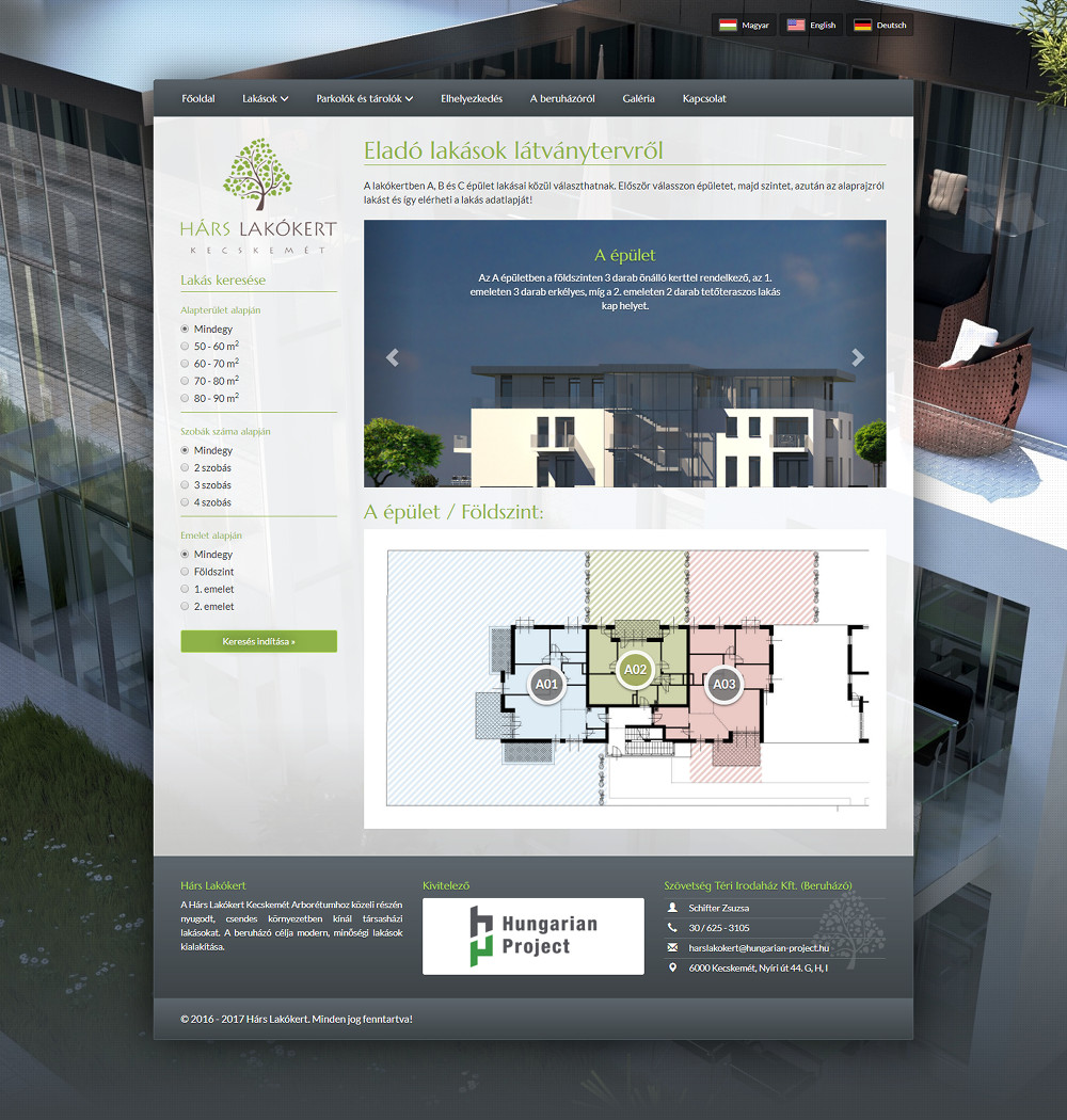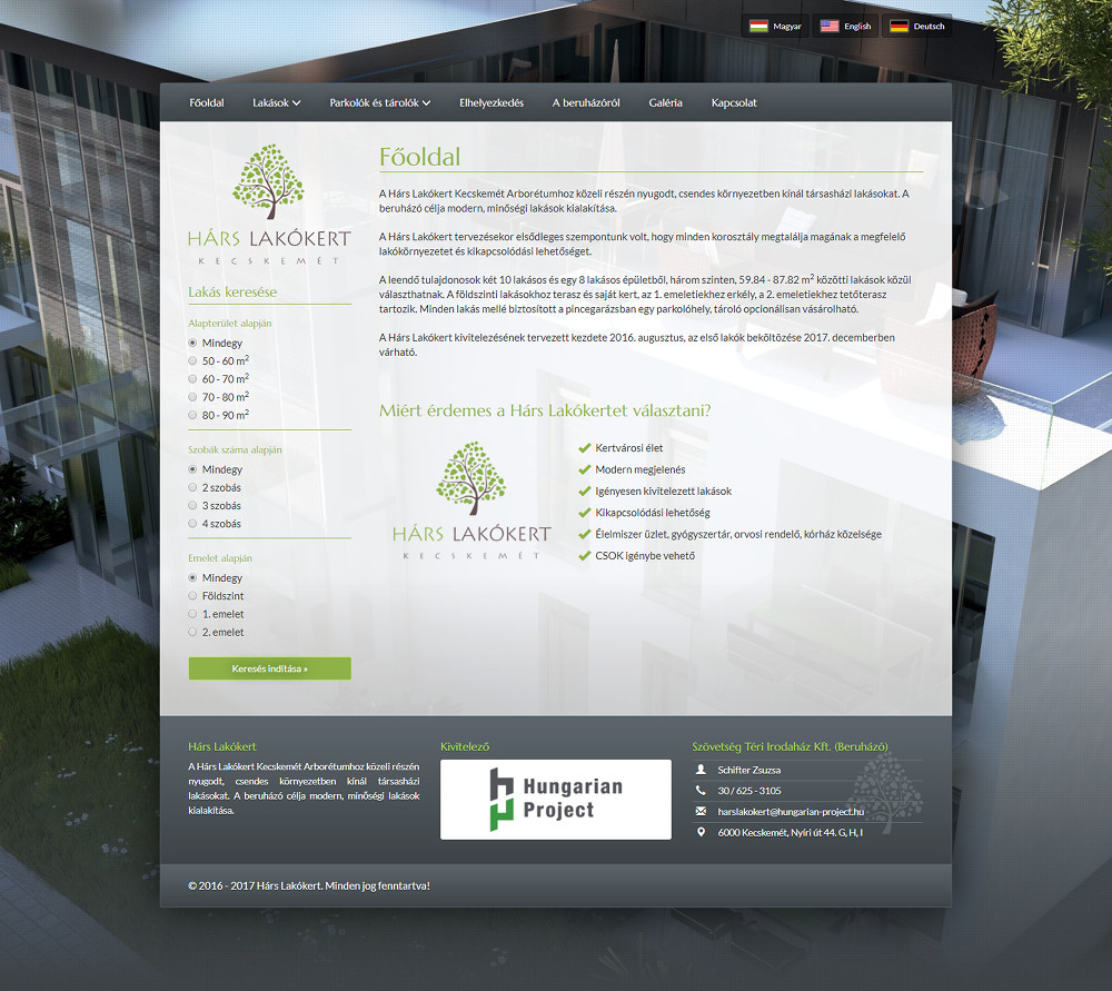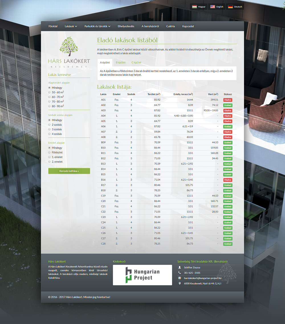 Multi-language, responsive site running on custom code, created for a client for listing apartments and parking lots.